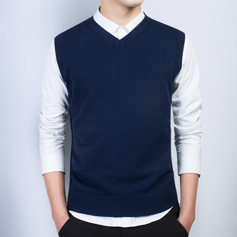 秋と冬のプルオーバーメンズウールセーターカジュアルメンズスリムジャンパーメンズ新しいVノースリーブ男性